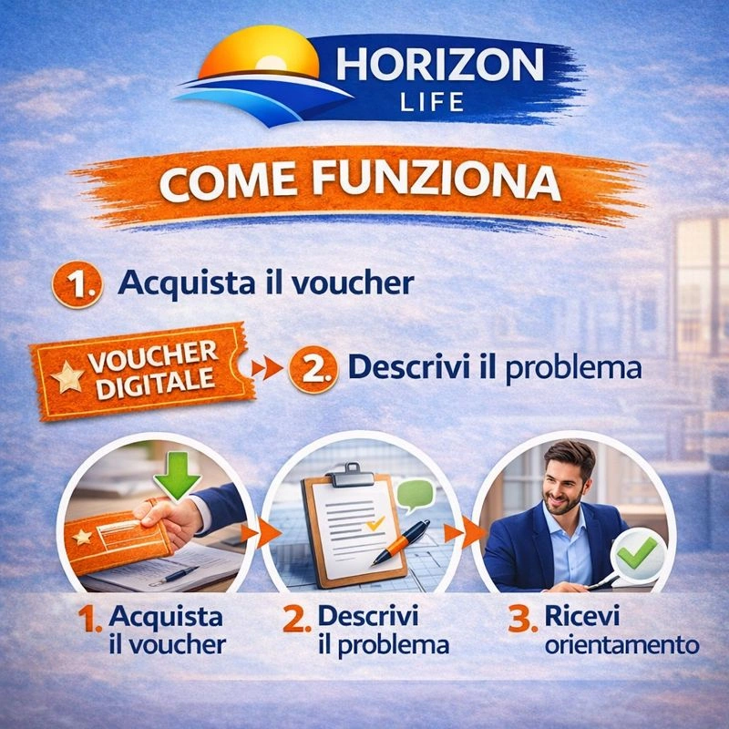 Dopo l’acquisto, il cliente riceverà via email le istruzioni per attivare il voucher e descrivere il proprio caso. Il team Horizon Life fornisce supporto per inquadrare la situazione, chiarire i principali aspetti legali coinvolti e orientare verso le possibili soluzioni o i professionisti più adatti.